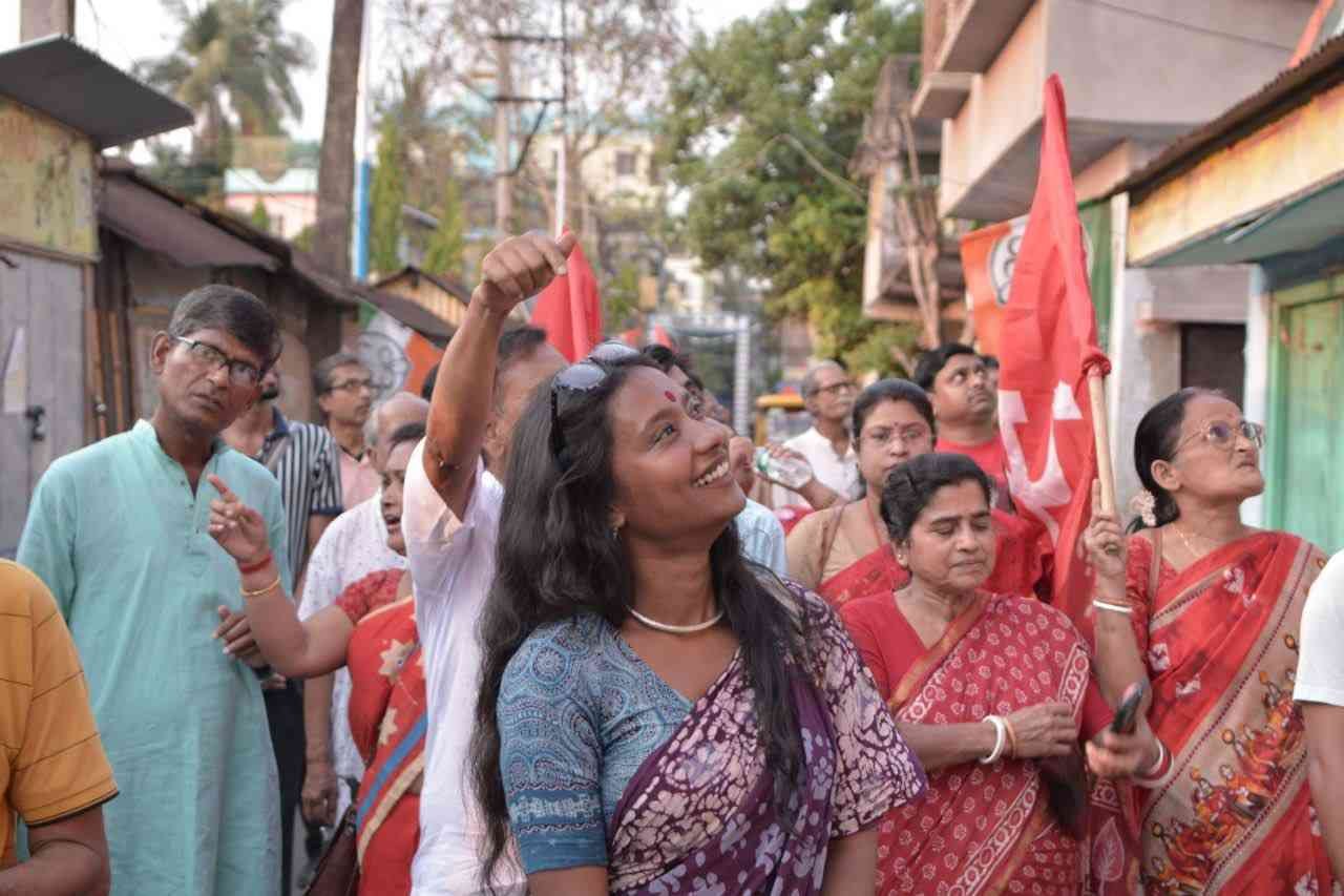 CPI(M) candidate Dipsita Dhar campaigning in Dum Dum Uttar. Credit: dipsita1993/Facebook