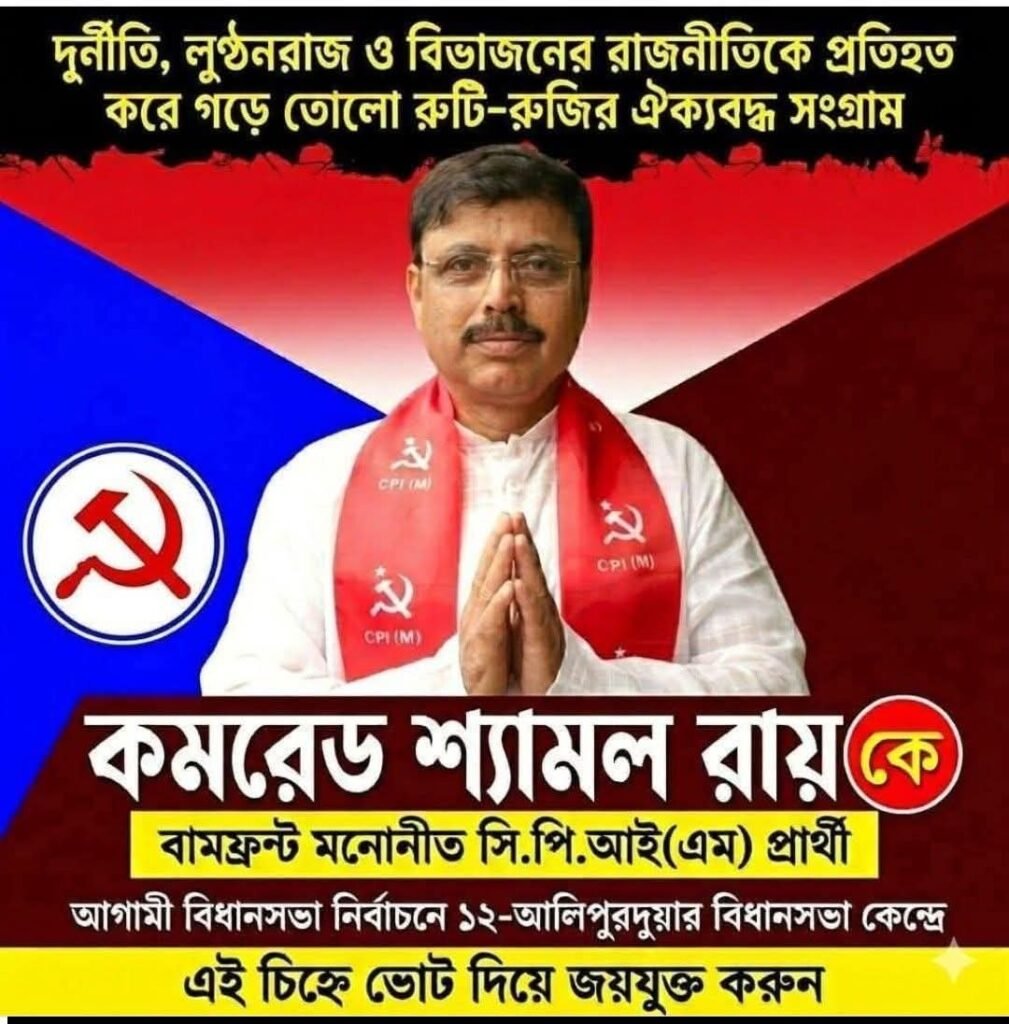 টালিগঞ্জ বিধানসভা কেন্দ্রে সিপিআইএম প্রার্থী কমরেড পার্থ প্রতিম বিশ্বাসকে কাস্তে হাতুড়ি তারা প্রতীকে ভোট দিয়ে জয়যুক্ত করুন।