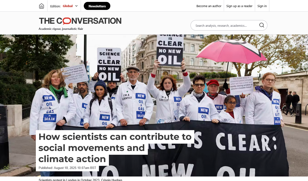 Scientists can also push for cultural and policy change within our own institutions, including research institutions, science academies and professional bodies. This might include cutting ties to the fossil fuel industry, reorienting research and teaching to focus on sustainable development or accelerating the decarbonisation of campus activities.