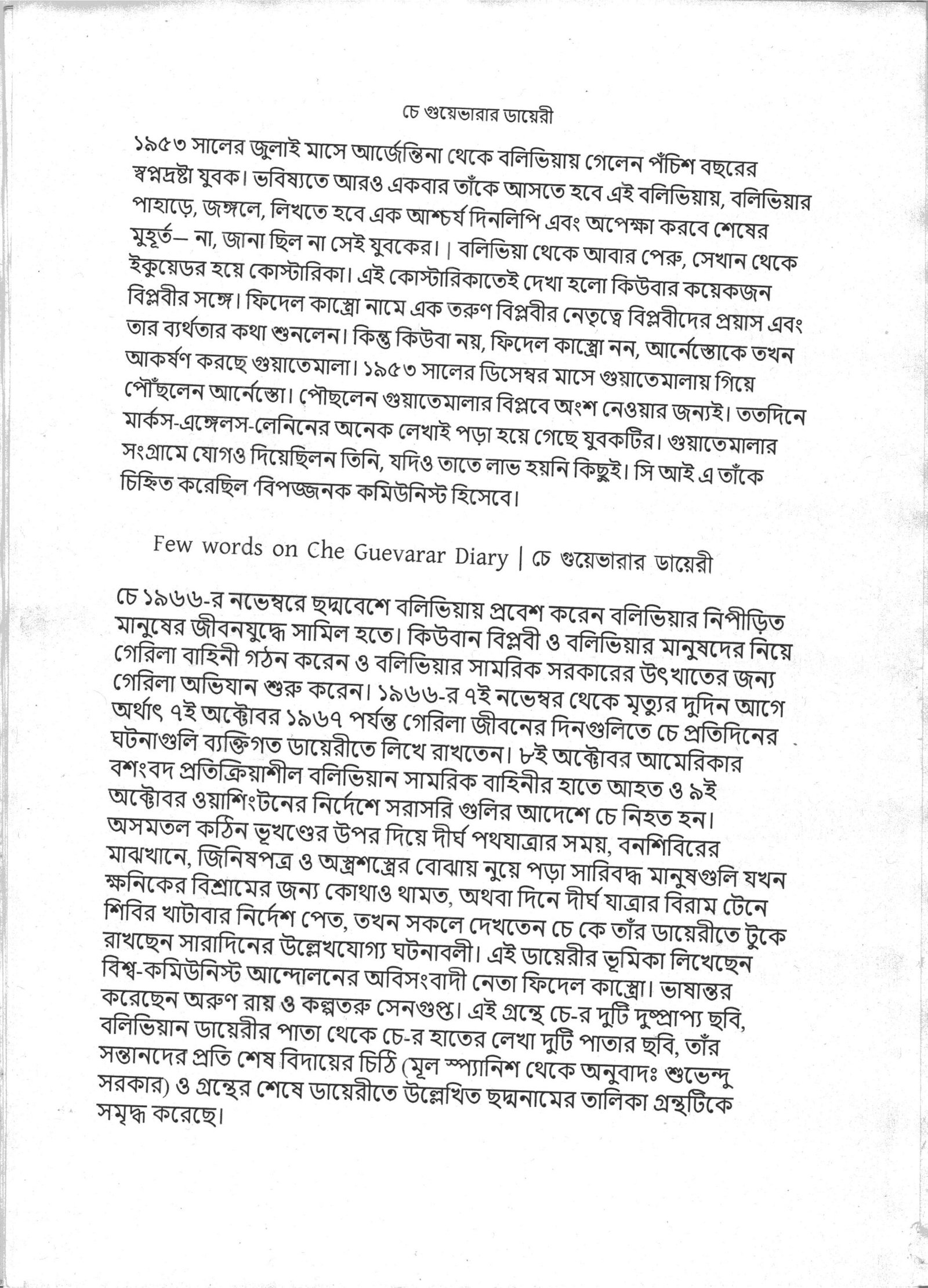 Few words on Che Guevarar Diary | চে গুয়েভারার ডায়েরী