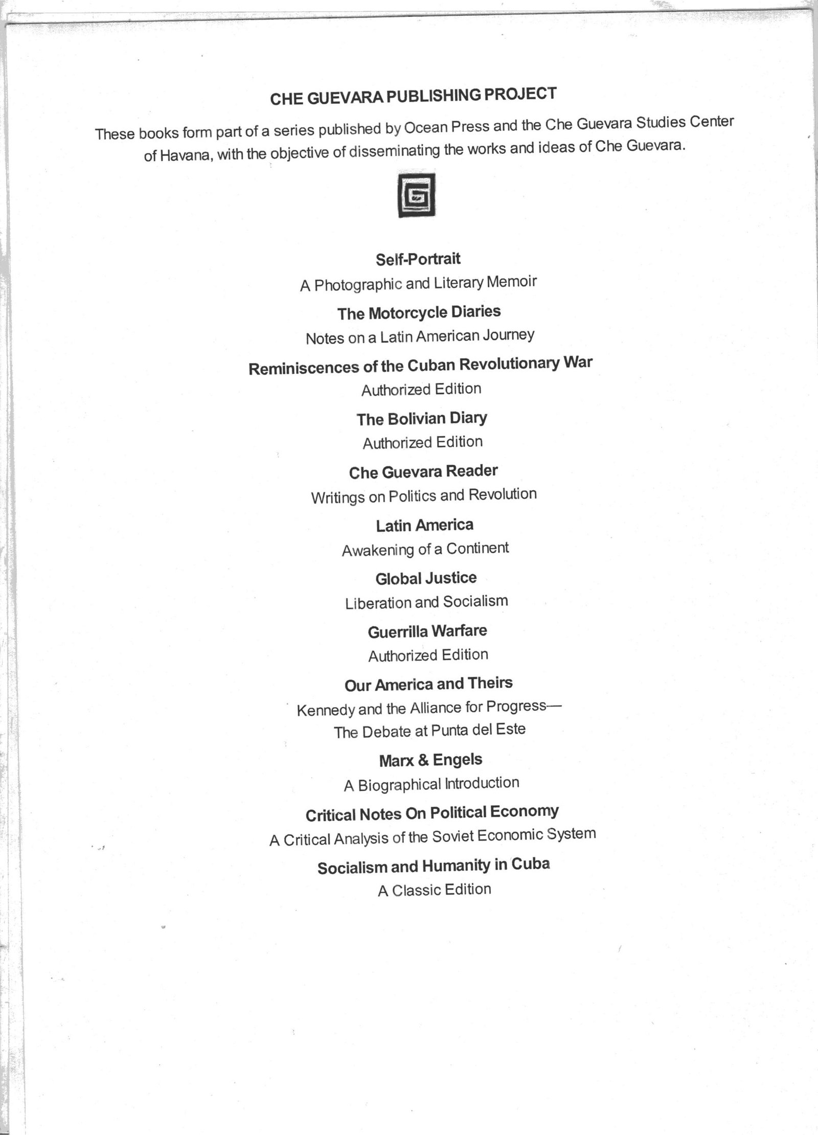 These books form part of a series published by Ocean Press and the Che Guevara Studies Center of Havana, with the objective of disseminating the works and ideas of Che Guevara.