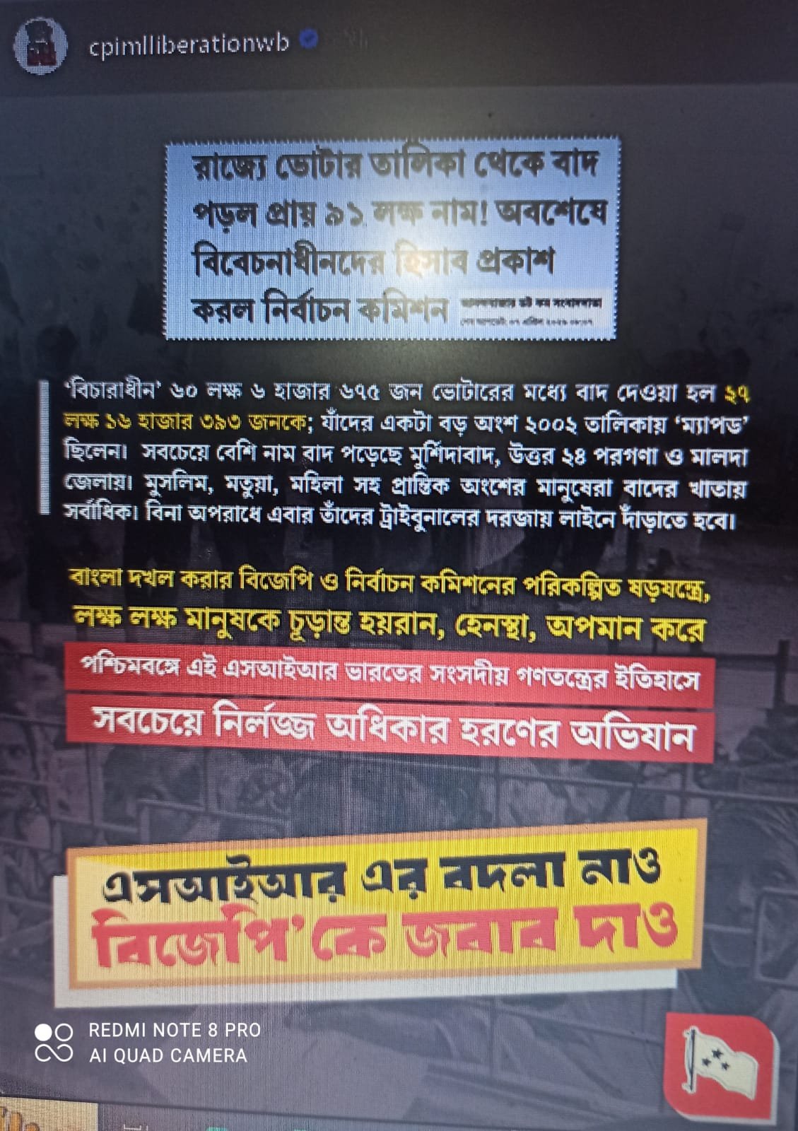 পশ্চিমবঙ্গের এই এসআইআর ভারতের সংসদীয় গণতন্ত্রের ইতিহাসে সবচেয়ে নির্লজ্জ অধিকার হরণের অভিযান।